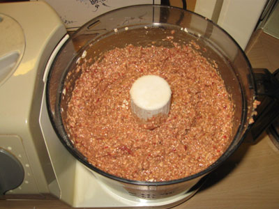 Mit der Küchenmaschine die Leber zerkleinern.